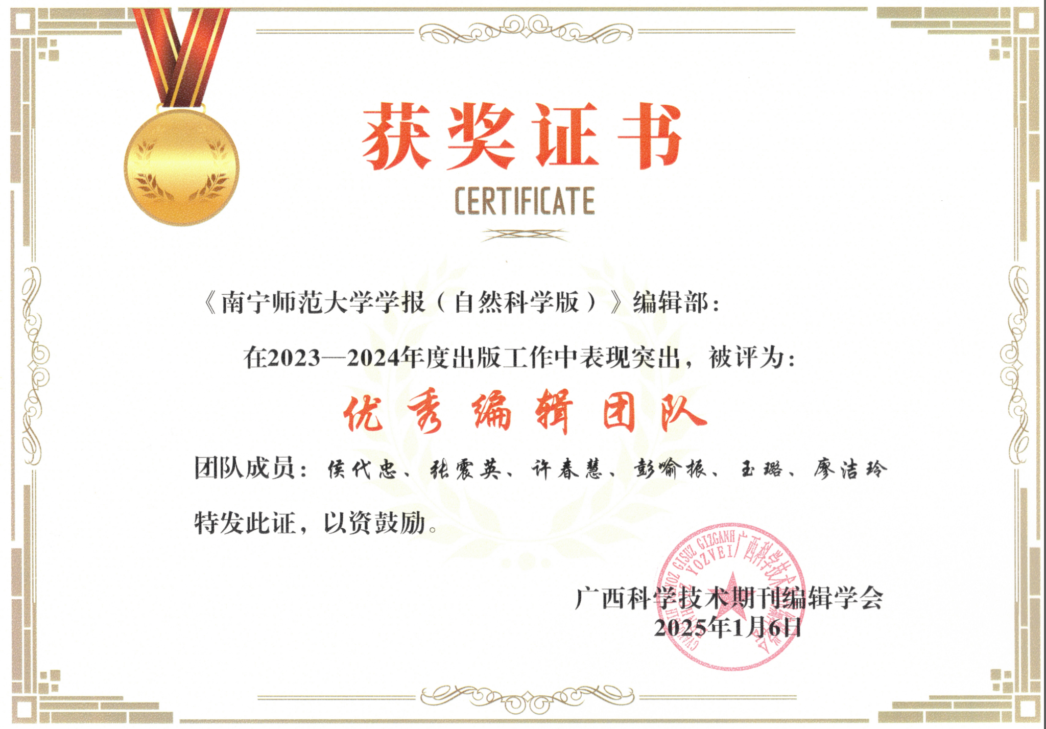 2025年1月13日(周一),“2024年广西科学技术期刊编辑学会年会”在广西陆川县举行,来自全区科学技术期刊界40余家单位代表及湖南省新文科文献计量科学研究院有限公司代表共70余人与会。会议分为开幕式、颁奖、工作总结、学术交流、理事会议等环节,学报编辑部主任张震英、自然科学版执行副主编许春慧参会。会议公布了“2023-2024年广西科学技术期刊优秀编辑团队”获奖名单,《南宁师范大学(自然科学版)》编辑部被评为“2023-2024年度优秀编辑团队”,张震英代表编辑部领奖。在学术交流环节,教育部长江学者特聘教授、南京大学苏新宁教授做了《谈期刊学术影响力提升——从主编角度》的主题报告。在理事会议环节,第七届理事会讨论通过了第八届理事会候选人名单、团体会费标准并布置了换届相关工作。